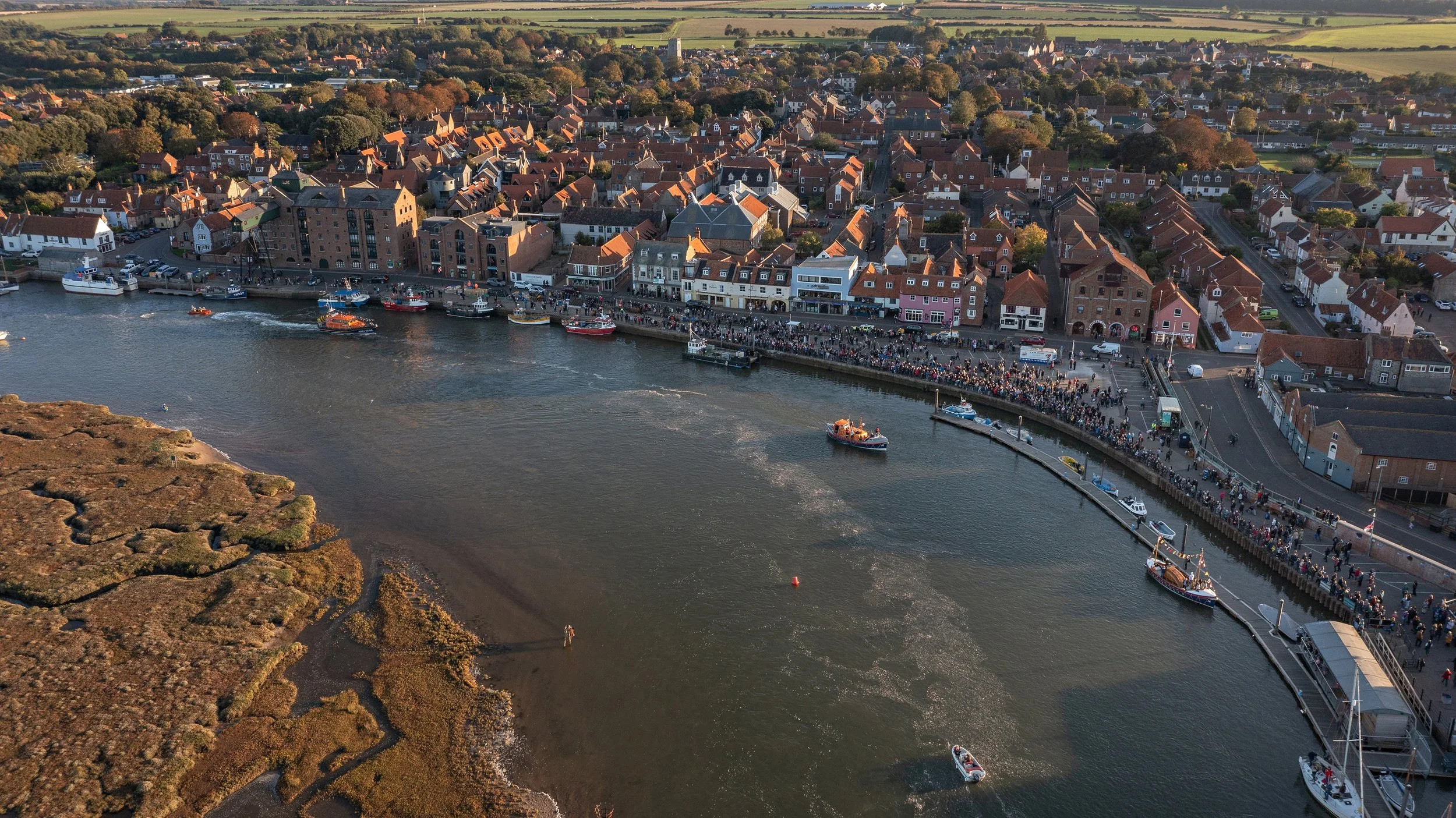 With the new boat safely into harbour preparations began for a celebratory flotilla up to Wells Quay where huge crowds were waiting to welcome their new lifeboat.
